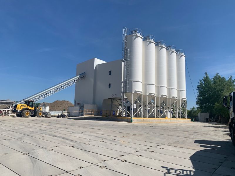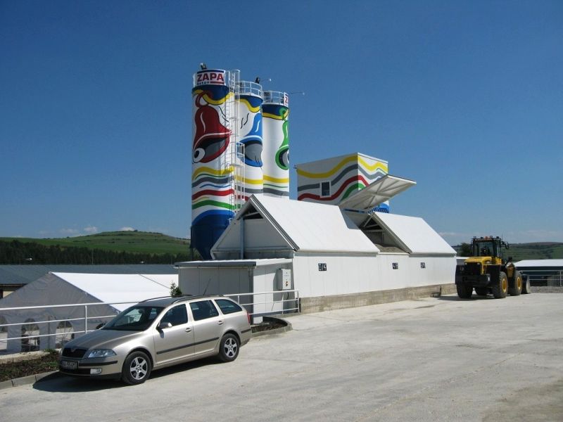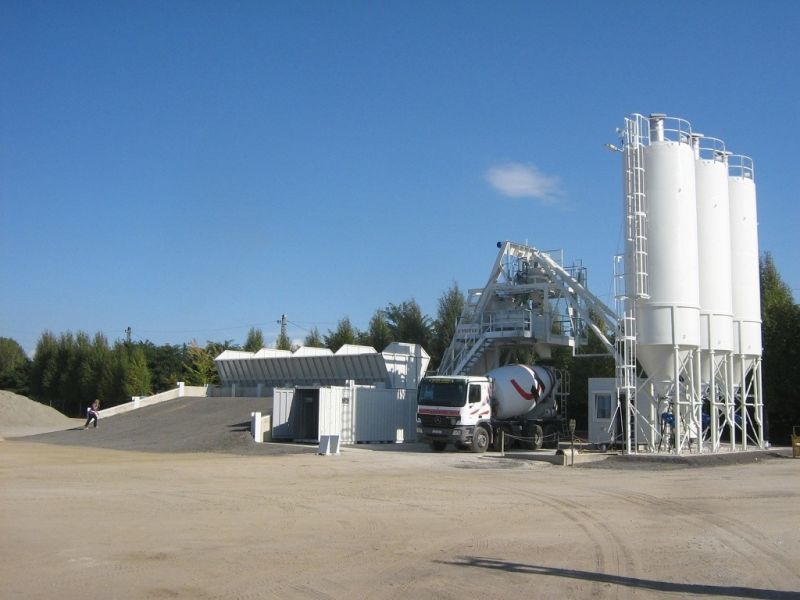 Jedná se o velmi produktivní zařízení, které je možné kombinovat s různými typy zásobníků kameniva. Nejčastěji použité jsou řadové, nebo kapsové zásobníky. Jako alternativu je možné řešit betonárnu s válcovým zásobníkem, poněvadž se jedná o velmi efektivní zařízení.