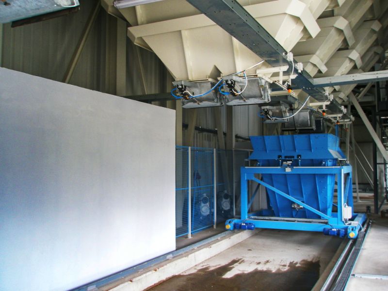 W skład tych urządzeń wchodzą również dołączone do mieszalnika systemy transportu mieszanek betonowych w halach produkcyjnych, które przenoszą wytworzoną mieszankę betonową do miejsca docelowego.